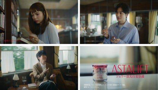社会学者の古市憲寿さんが登場します。列車で偶然出会った3人の会話を通じて、土台ケア(※3)から、エイジングケア(※1)まで叶えるジェリー状先行美容液「アスタリフト ホワイト ジェリー アクアリスタ(医薬部外品)」に配合している「Wヒト型ナノセラミド(※2)」の特長を伝えます。