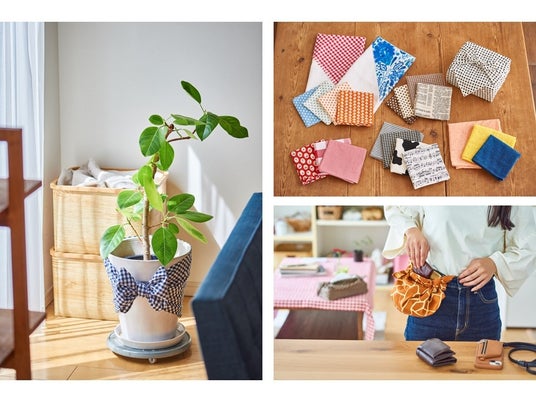 滝野さんは物を包む以外に、部屋のカーテンやバスケットの目隠しカバー、テーブルクロスやバッグとしても使っています。どんなかたちにもなり広げれば一枚の布に戻る、それがふろしきの魅力だといいます。結んだり包んだり、結び目をほどいたり、身につけているうちにほどよく力が抜けて、物事を柔軟に考えられるようになるんだとか。