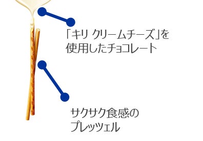 ◆クリーミーでコクのある味わいが特徴の「キリ クリームチーズ」を使用したホワイトチョコレートを、サクサク食感のプレッツェルに最後までたっぷり閉じ込めました。