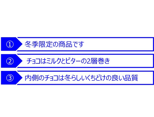 ◆内側のミルクチョコは、くちどけの良い品質で、コクのあるチョコレートに仕立てており、冬季限定ならではの一粒で満足できる品質です。