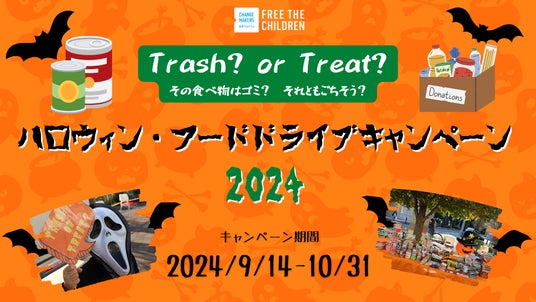 認定NPO法人フリー・ザ・チルドレン・ジャパン(所在地:東京都世田谷区南烏山6-6-5-3F、代表:中島早苗)は、「世界食料デー」月間、食品ロス削減月間である10月に合わせ9/14~10/31に「ハロウィン・フードドライブキャンペーン」を開催、各地域でフードドライブを開催する賛同団体のエントリ―を呼びかけています。また併せて、モデルイベントとして10/14(月・祝)に「ハロウィンフードドライブx仮装パレードin千歳烏山」を世田谷区烏山区民センター前広場で開催、参加者を募集しています。