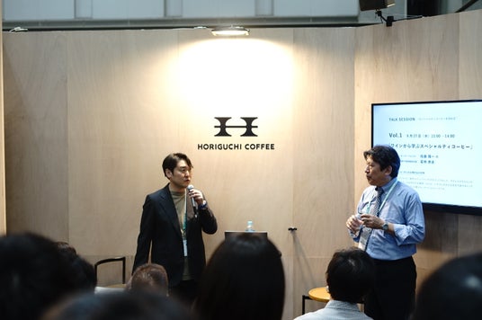 堀口珈琲の考えるスペシャルティコーヒーを展示会後もご自身で再確認していただくべく、試飲に供したコーヒー豆を中心に当社のコーヒー豆と関連グッズをブース内で特別価格で販売します。また、近年、ホームロースターでサンプル焙煎をする方々が増えていることから、コーヒー生豆も150g単位で販売。ブース内ではコーヒーの試飲・解説と並行して、トークショーも開催します。代表・若林による出展コンセプトの解説の他、当社のチーフ・サステナビリティ・オフィサー(CSO)・伊藤亮太がゲストを招いて「コーヒーとサステナビリティ」をテーマに対談を実施します。