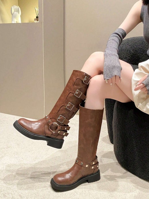 商品名:バックルデザイン 低ヒール 女性用ハイブーツ