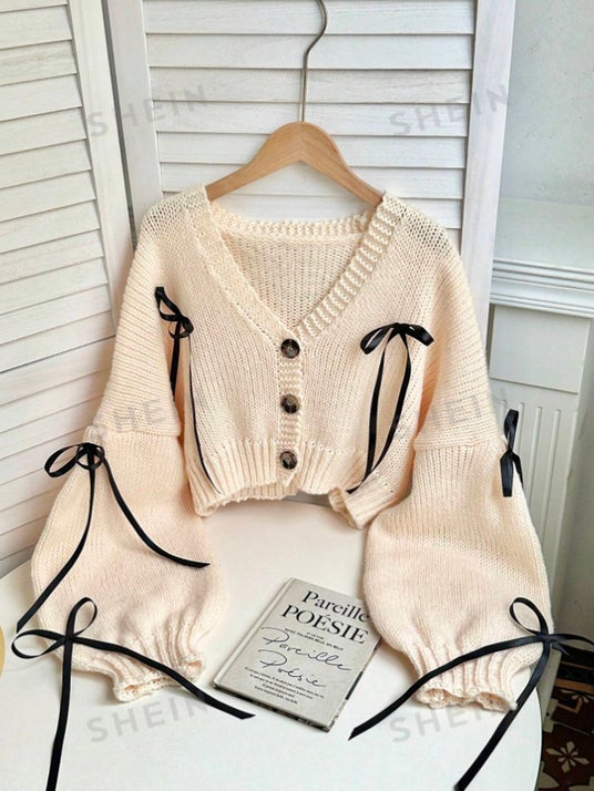 商品名:SHEIN MOOSTA レディース コントラストカラー リボンニットカーディガン