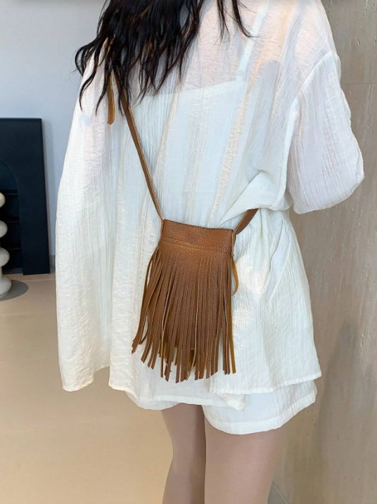 商品名:シンプルデザイン ファッションカジュアルなフリンジ付き ウォーターバケット型ショルダーバッグ