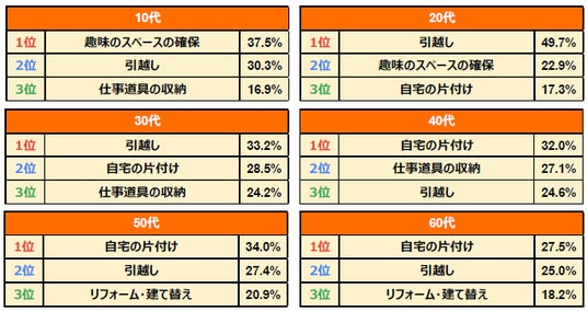 ・40代~60代までの利用用途は、「自宅の片付け」が1位に