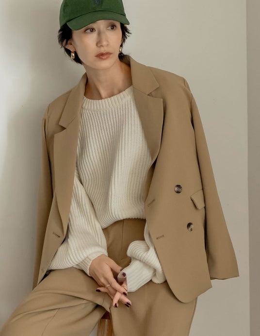 ハンサムだけど女っぽい、ざっくり編みのニットがポイント。