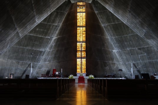 曲線を帯びた特徴的なコンクリート壁面は、上空から見ると十字架のシルエットを形作っています。