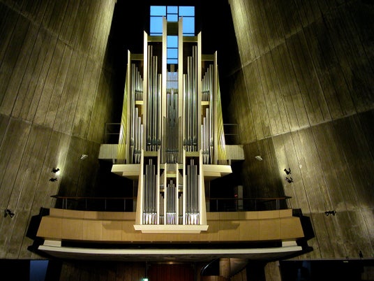 また、聖堂には日本最大のパイプオルガンが設置されており、硬い壁面の大空間は素晴らしい音響効果をもたらしています。