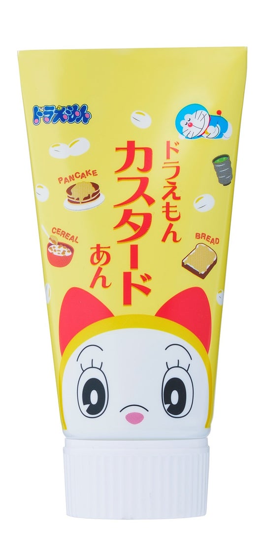 この商品は、世界中で子供から大人まで人気の日本を代表するキャラクター「ドラえもん」をパッケージに使用し、日本だけでなく海外からの観光客にも「あんこ」を身近に感じて試していただけるように開発し、今年の春に発売した「ドラえもん つぶあん」の姉妹品として妹のドラミちゃんをデザインに使用しました。どなたでも簡単にお手軽に使えるように「ドラえもん つぶあん」同様、チューブタイプにしました。お子様でも簡単にホットケーキやアイスクリームなど、さまざまな喫食シーンでトッピングを楽しむことができます。味は、海外の方や、子供たちにも食べやすいように、カスタード風味に仕上げました。