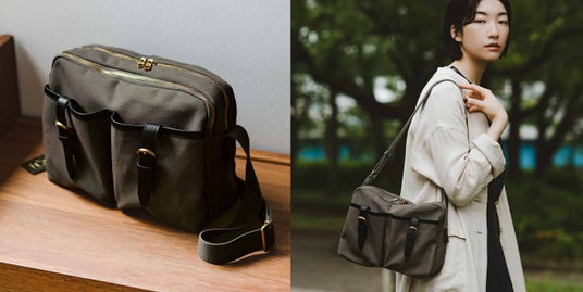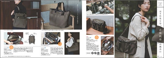 ほどよい厚みの“倉敷帆布”のシリーズに、ヤギ革を組み合わせた新しいショルダーバッグが仲間入りしています。ファスナー式の2室のメインスペースと、大きなフロントポケットに、毎日の必需品がほどよく収まります。ふたつの内ポケット付きで、仕分けもスムーズ。フロントポケットにきかせた革ベルトは、マグネット式で開閉も簡単です。日本随一の綿帆布の生産地、倉敷・児島で作られる倉敷帆布。築90年の工場にある1960年代製の稀少なシャトル織機は、大切に修理を重ねながら今日も活躍中。職人は「音やにおいからも機械のコンディションがわかる」といいます。日々、相棒のように使うほどなじみゆく素材の風合いも魅力のひとつです。