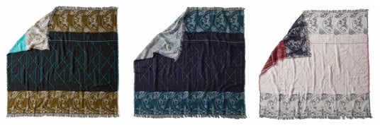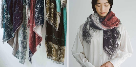 夜空の色、満月、さまざまな星座など、果てしない天体をイメージした播州織の大判ストールです。大判でありながら、肩の凝らない軽やかさで、肌心地やわらかく、ふんわりと絵になるボリューム感でさっとまいても様になります。兵庫県北播磨地区で200年以上続く播州織の歴史に、たゆみない研究心で新たな魅力を吹き込む工房「織馬鹿」が、繊細な図案をジャカード織りで表現し、番手の細い糸を密度を詰めて織り上げて、繊細で色の重なりも表情豊かに仕上げています。さらに、理想のふんわり感の裏側には、生地を計6回も手洗いするなど、手間ひまを惜しまない、ものづくりへのこだわりが込められています。裏と表で異なる配色が美しく、秋冬の装いを引き立てます。