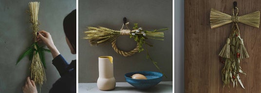 和と洋、どちらのインテリアにも調和する簡単に作れるスワッグキットです。小麦や稲など、実りをもたらす穀物を取り入れており、ひとつずつ飾るほか、複数をまとめて大きなスワッグにしても華やかです。クリスマスには柊(ひいらぎ)を足したり、お正月には橙(だいだい)を足したりと、季節の行事に合わせたお飾りにアレンジすることもできます。