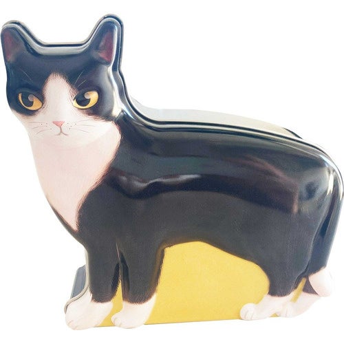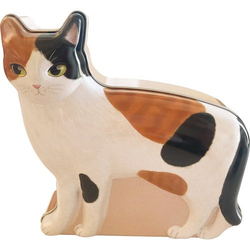 ネコの形をデザインした缶です。ストロベリー風味キャンディ8個と肉球型のクッキー3個が入っています。