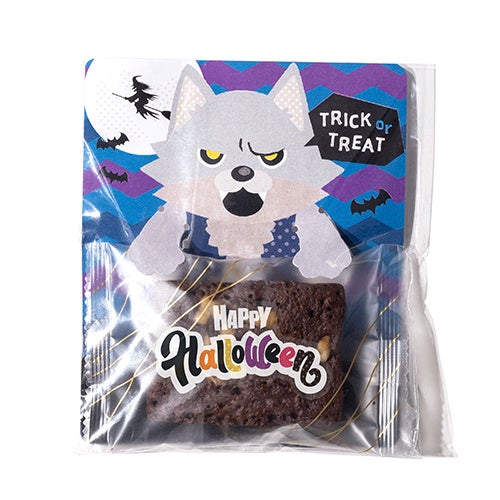 立体感のあるデザインが特長のプチお菓子。オオカミ男、ジャックオーランタンがお菓子を大事そうに抱えてあなたにプレゼントします。