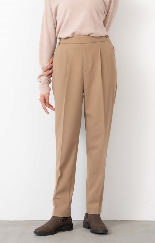 2024年春夏のオルスタパンツから改良し、タックの幅を変更しています。ウエスト・ヒップ部分をよりすっきりさせました。