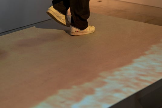 ハプティクスと呼ばれる「触覚提示技術」は、振動で”触覚”を人工的に作り出し、疑似的に再現する技術です。その“振動”は、繊細な感触や激しい衝撃に、今まさに触れているような没入感を生み出します。今回使用している技術は、床に搭載された振動デバイスが、映像やサウンドに合わせて震えることで、床が水たまりや砂浜に変わったかのように感じさせるインタラクティブ性をもった技術です。人の歩行にあわせて多彩な振動フィードバックを実現するために、数少ないセンサーで微細な踏み込みの変化を検知する技術が搭載されており、まさに空間を超越したような体験が可能となっています。