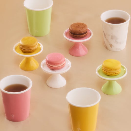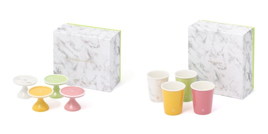 ピエール・エルメ・パリを代表するマカロンのカラーや、ピエール・エルメ・パリ青山のブティックイメージである大理石柄を取り入れた、ミニカップ4点セットです。来客時やパーティーなどで紅茶を淹れておもてなしする際に、マカロンスタンド4点セットと合わせてコーディネートするのがおすすめです。ギフトにもぴったりのBOX付きです。