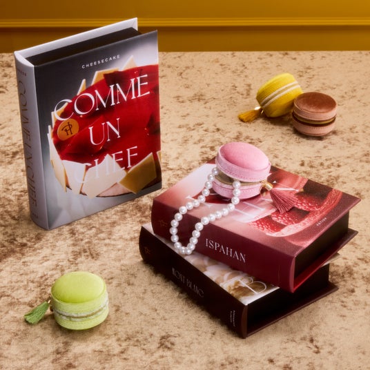 ピエール・エルメ・パリを代表するマカロンをデザインに落とし込んだミニ ジュエリーボックスです。リング、ピアス、ネックレスやブレスレットを収納できます。内側生地はマカロンのクリームのカラーを表現しています。ジッパー部分にはオリジナルのロゴチャームとタッセル付きです。持ち運びしやすいミニサイズなのでホリデーシーズンのおでかけにぴったりなアイテムです。