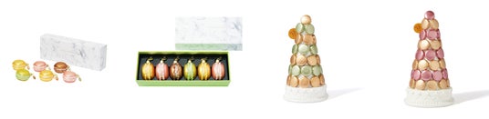 ピエール・エルメ・パリを代表するマカロンのカラーや、ピエール・エルメ・パリ青山のブティックイメージである大理石柄を取り入れた、マカロンスタンド4点セットです。マカロン1個用のミニスタンドはパーティーシーンや特別なご褒美時間にもおすすめです。アクセサリーや小物置きとしてもお使いいただけます。ギフトにもぴったりのBOX付きです。