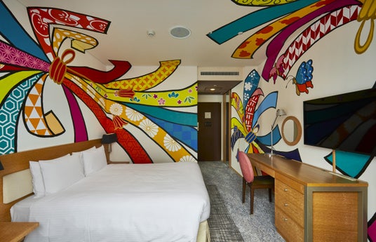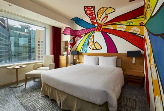 を取り入れております。アーティストの活躍と情報発信の場を提供し、世界中から訪れるお客様に、日本文化・芸術・おもてなしを発信するプラットフォームの役割を担っています。その取り組みのひとつが、「アーティスト・イン・ホテル」。アーティスト達が実際にホテルに滞在し、インスピレーションによって生まれた美意識をレジデンス制作するプロジェクト。ホテルの客室そのものがアートとなった世界に一つだけのお部屋です。