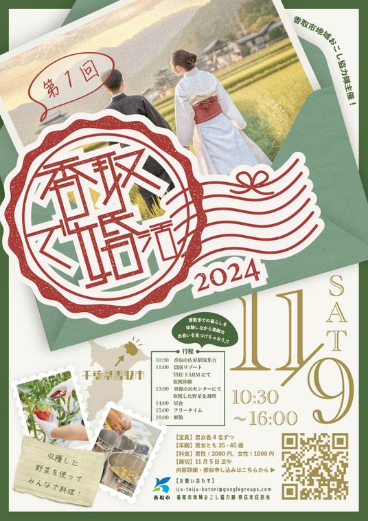 2024年11月9日(土)に、千葉県香取市で開催される「香取で婚活」ツアーの参加者を募集します。
