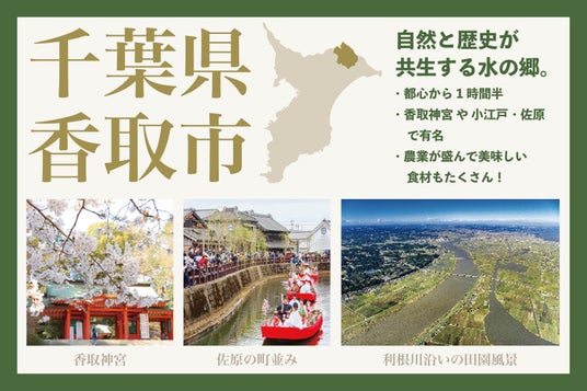 東京から1時間半、千葉県北部に位置する香取市は、豊かな自然に恵まれた歴史ある土地です。