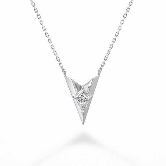 大谷翔平選手にとって初挑戦となるMLB(TM)︎のポストシーズン、大谷翔平選手をはじめチームが一丸となってワールドチャンピオンに向けて新たな勝利のステージへと突き進む姿を応援して、デザインを一新したコラボレーションジュエリーが誕生しました。All for Victory Collection は、ラボグロウンダイヤモンド ピンブローチとペンダントの2種類を展開。どちらもVictory(勝利)の頭文字である V をメタルで表現しています。V のデザインは紙飛行機がモチーフで、青い空を超え、大谷翔平選手にしか到達できない未知の領域まで、夢を乗せて飛んでいって欲しいという願いが込められています。V のフレームに合わせるため、緻密に調整されたカイトカットを施したラボグロウンダイヤモンドの存在感が目を惹く、メモリアルな逸品です。