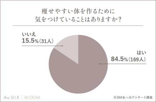 実際に女性200名に調査したところ、約85%が「痩せやすい体作りのために気をつけていることがある」と回答しました。