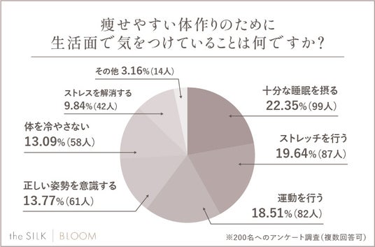 「株式会社HYV(本社:東京都目黒区、代表取締役:茅野 航平)が運営する「the SILK BLOOM」では、「痩せやすい体作り」に関するアンケート調査を実施いたしました。