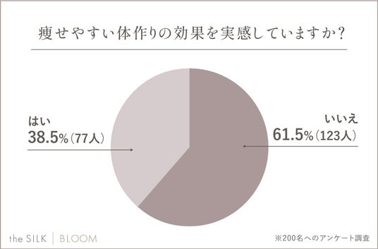 なんと痩せやすい体作りの効果を実感できていないと回答した方が、61.5%と半数以上でした。