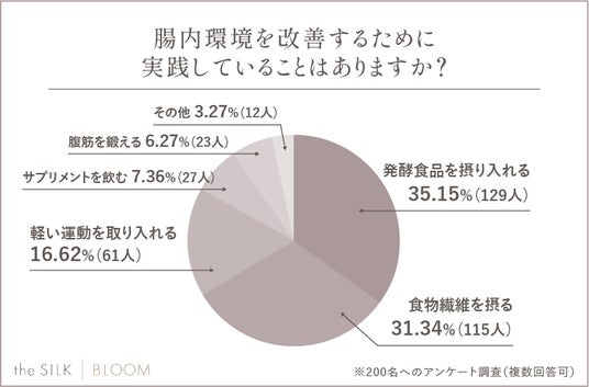 腸内環境を改善するために実践していることを調査したところ、食品に気を使っている方が多いことが分かりました!