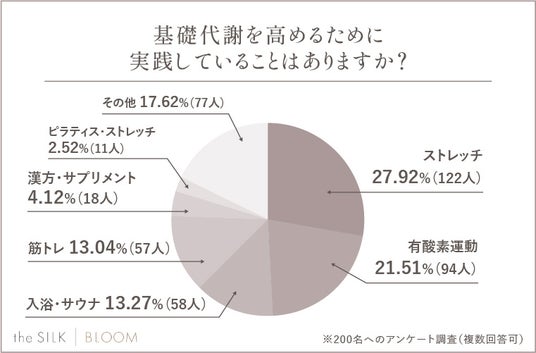 基礎代謝を高めるために何をしているかを女性200名に調査したところ、以下のような結果となりました。