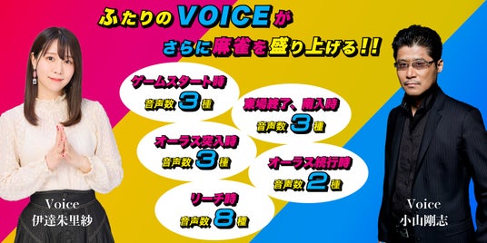 – 音声案内機能:人気声優の小山剛志さんと伊達朱里紗さんを起用した音声案内機能を搭載。ゲーム開始時やリーチ時には、華やかで力強い音声が麻雀を一層盛り上げます。