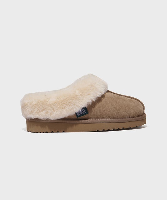 繊細なオーバーロックステッチとボリュームのあるパートリミングディテールのクラシックなデザインのミュールタイプ。 リアルスエード素材を使用し、より暖かい保温性と柔らかい肌触り。 また、摩耗に強い高弾性軽量アウトソールを使用しており、滑り止めにも優れ、柔らかくて快適な履き心地。