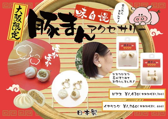 ・価 格:豚まんピアス(1,300円+税)・豚まんイヤリング(1,600円+税)
