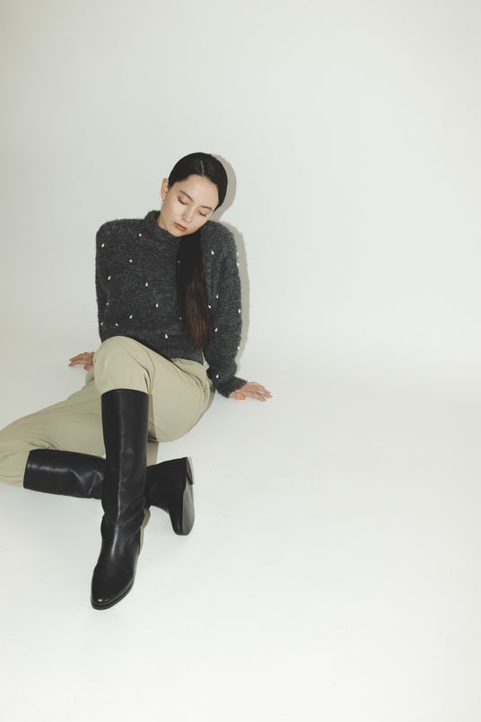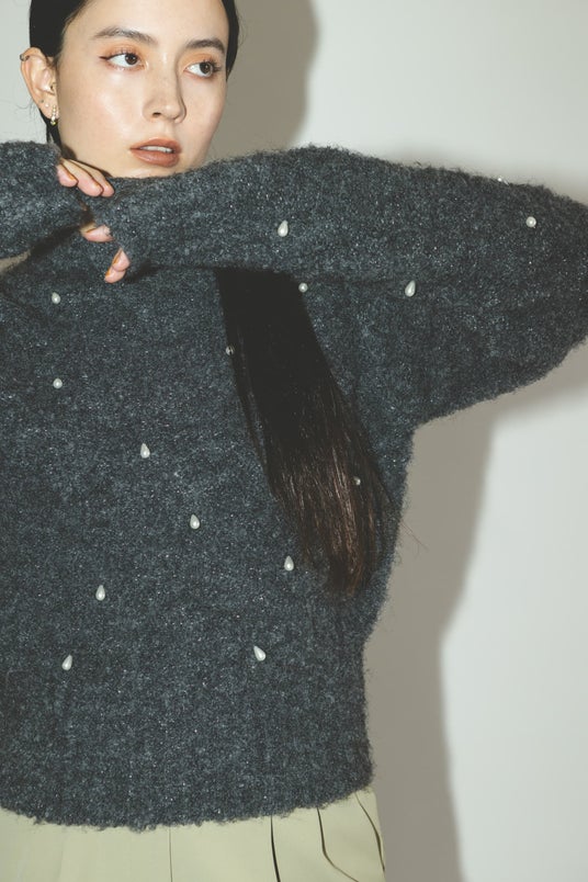 ラメブークレ雫パールニット ¥15,400(税込) カラー:グレー・アイボリー サイズ:F
