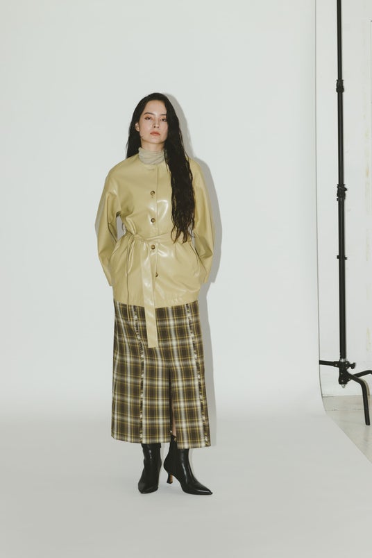 フェイクレザーピンタックスカート(セットアップ可) ¥14,850(税込) カラー: ブラック・ベージュ サイズ:S・M