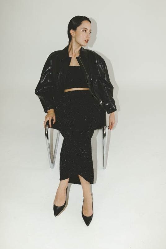 フェイクレザーショートブルゾン(セットアップ可) ¥19,800(税込) カラー: ブラック・ベージュ サイズ:S・M