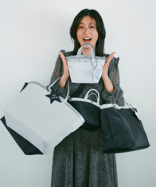 お買い物はとことんリサーチ、機能面も気分が上がるビジュアルも大事!と語るユイカさんのこだわりが詰まったモノトーンのバッグはカラーバリエ―ションが3色、サイズが2型の全6型。