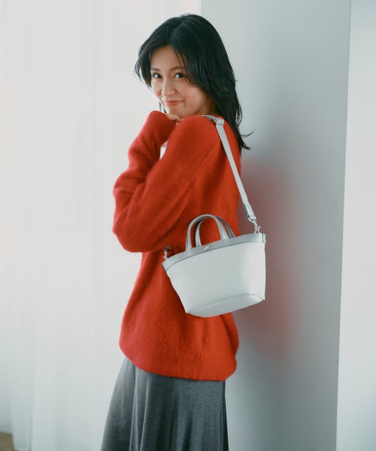 ブランドネームのレザーパッチには本仮屋さんのサインが、底面をのぞくと「HAVE A LOVELY DAY !」のメッセージ入り。本仮屋さん厳選の3色展開。