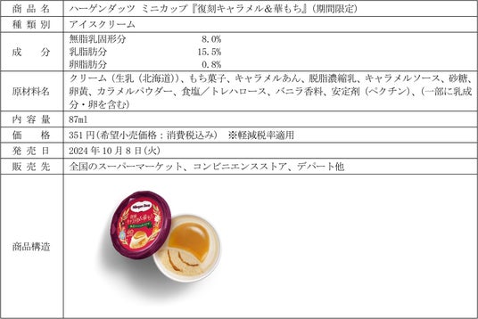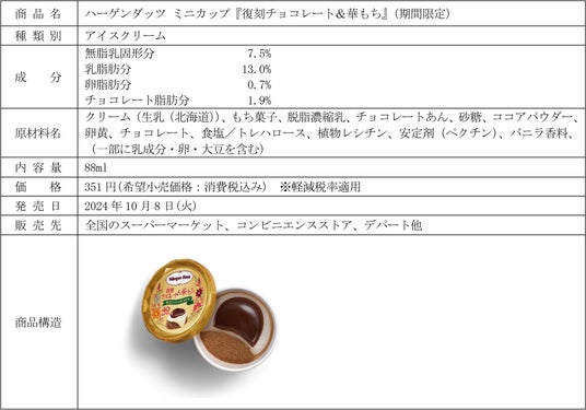 ハーゲンダッツ ジャパン株式会社(本社:東京都目黒区、社長:五十嵐享子)は、ハーゲンダッツ ミニカップ『復刻チョコレート&華もち』、同『復刻キャラメル&華もち』を10月8日(火)より期間限定にて全国で新発売します。