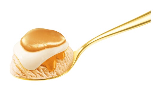 ミルクを煮詰めて作ったキャラメルソースを、キャラメル風味のアイスクリームにマーブル状に混ぜ込んだフレーバーです。
