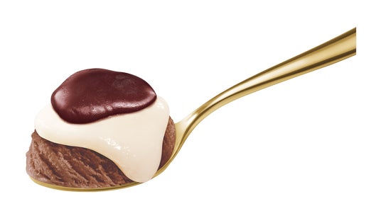 濃厚な味わいのビターチョコレートアイスクリームに、柔らかなもちをのせ、奥行きある味わいのチョコレート餡をトッピングしました。