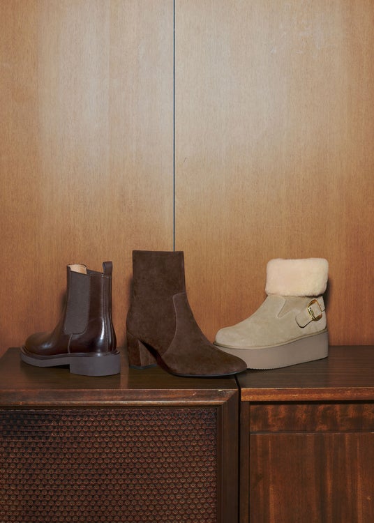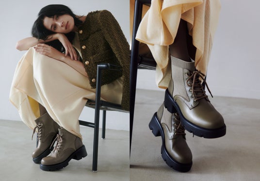おしゃれ見えするカーキカラーで、足元を一気に冬モードへと導いてくれる一足。