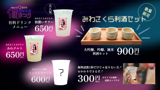 オンライン限定販売※の純米酒と揚げたてポテチのペアリングを楽しむ無料試飲会の他、日本酒カクテルや酒粕を使ったノンアルコールカクテルなど、新感覚の日本酒体験をお楽しみいただけます。さらに、「これぞ日本酒の醍醐味!」という美和桜酒造の大吟醸酒、吟醸酒、純米酒の利き酒セットもご用意しています。