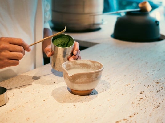 カウンターはお客様の目の前で抹茶を点てるシーンをご覧いただける作りになっており、抹茶を点てる音、抹茶の芳醇な香り、セイロや茶釜から立ち昇る湯気など、五感で抹茶の面白さを体感していただけます。