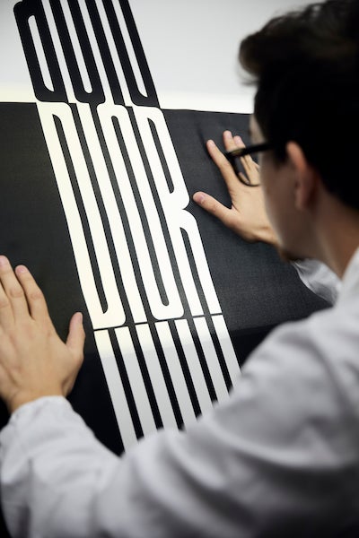 2025年春夏 コレクションにおいて、マリア・グラツィア・キウリはディオールで初めてプレタポルテを手掛けたマルク・ボアンによるアーカイブから着想を得て「オプティックプリント 169」を考案しました。DIORのタイポグラフィを再解釈したフレッシュでダイナミックなデザインが特徴で、黒いシルク生地に鮮明なプリントを施す高度な技術が用いられています。また、白い背景に黒いプリントを施す際には、染料に増粘剤を加えることでにじみを防ぎ、デザインをよりクリアに表現しています。その卓越したサヴォワールフェールを動画でご覧ください。