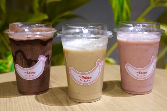 左からチョコレートバナナスムージー、バナナスムージー、ストロベリーバナナスムージー