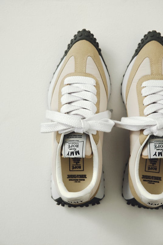 「ROPE」は1968 年にスタートしたレディースブランド。2024 年SS シーズンよりクリエイティブディレクターに齊藤 智が就任。彼の描くイメージ新たなスタイルイメージにプラスするアイテムとして、スニーカーを“スポーティエレガンス”なローファーのような存在として作りたいという思いから、齊藤が在伊時代より親交の深いデザイナー三原 康裕氏との本コラボレーションが今回実現いたしました。